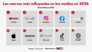 YouTube, Google and Instagram lead the ranking of the most influential brands in 2026 according to Onclusive, dominating media and social networks.
